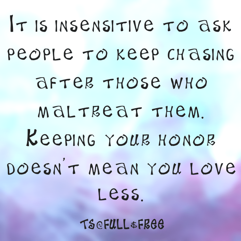 There are times you may feel torn between preserving your honor and expressing the love you have for someone who is being difficult.