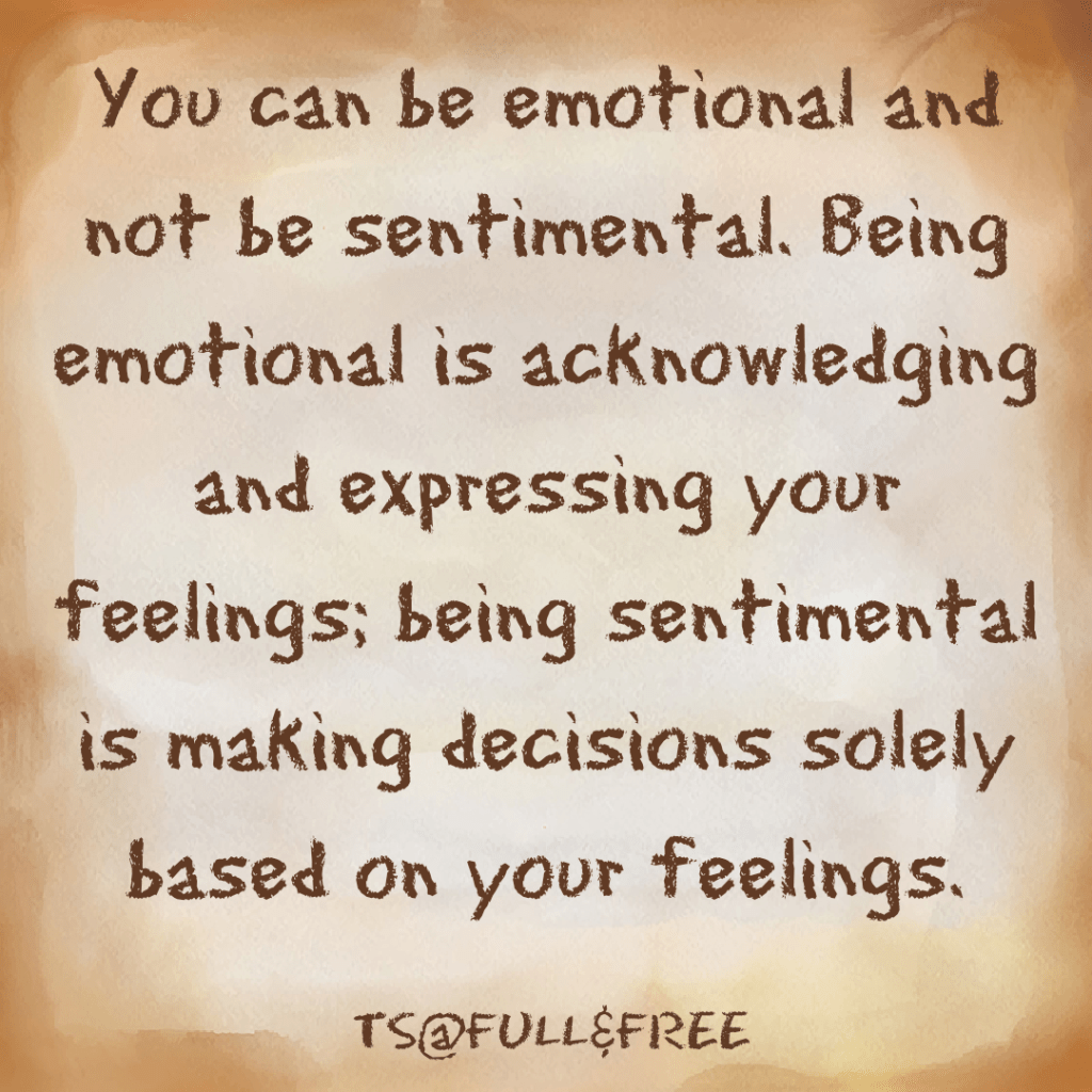 Being sentimental is acting based on feelings alone. You need to make sure you have truth and discretion to the decisions matrix before you can make sound judgment.