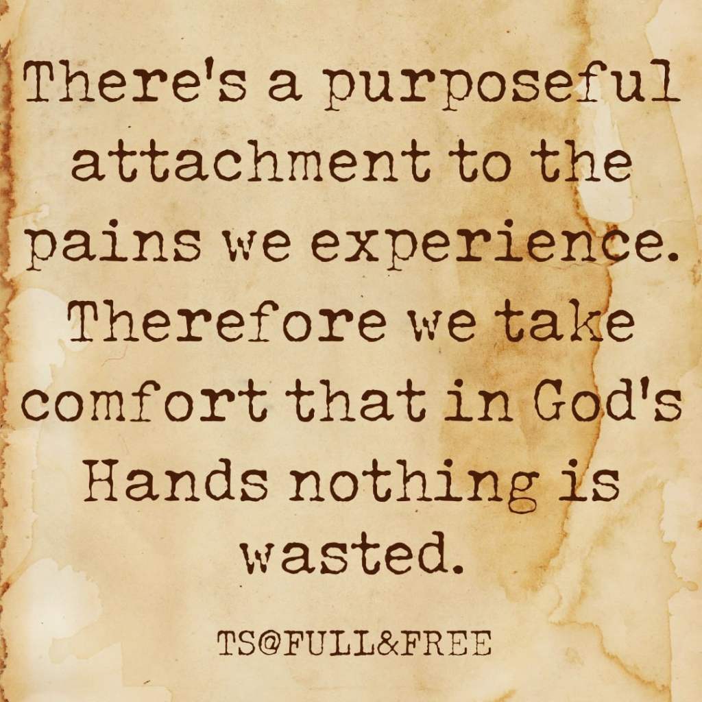 With the painful experiences of life, we also have the grace of healing, of restoration, of meaning …. It’s not that we should trivialize or rejoice for pains but having put all things in His hands, we believe that with God there’s a gain we don’t understand yet.