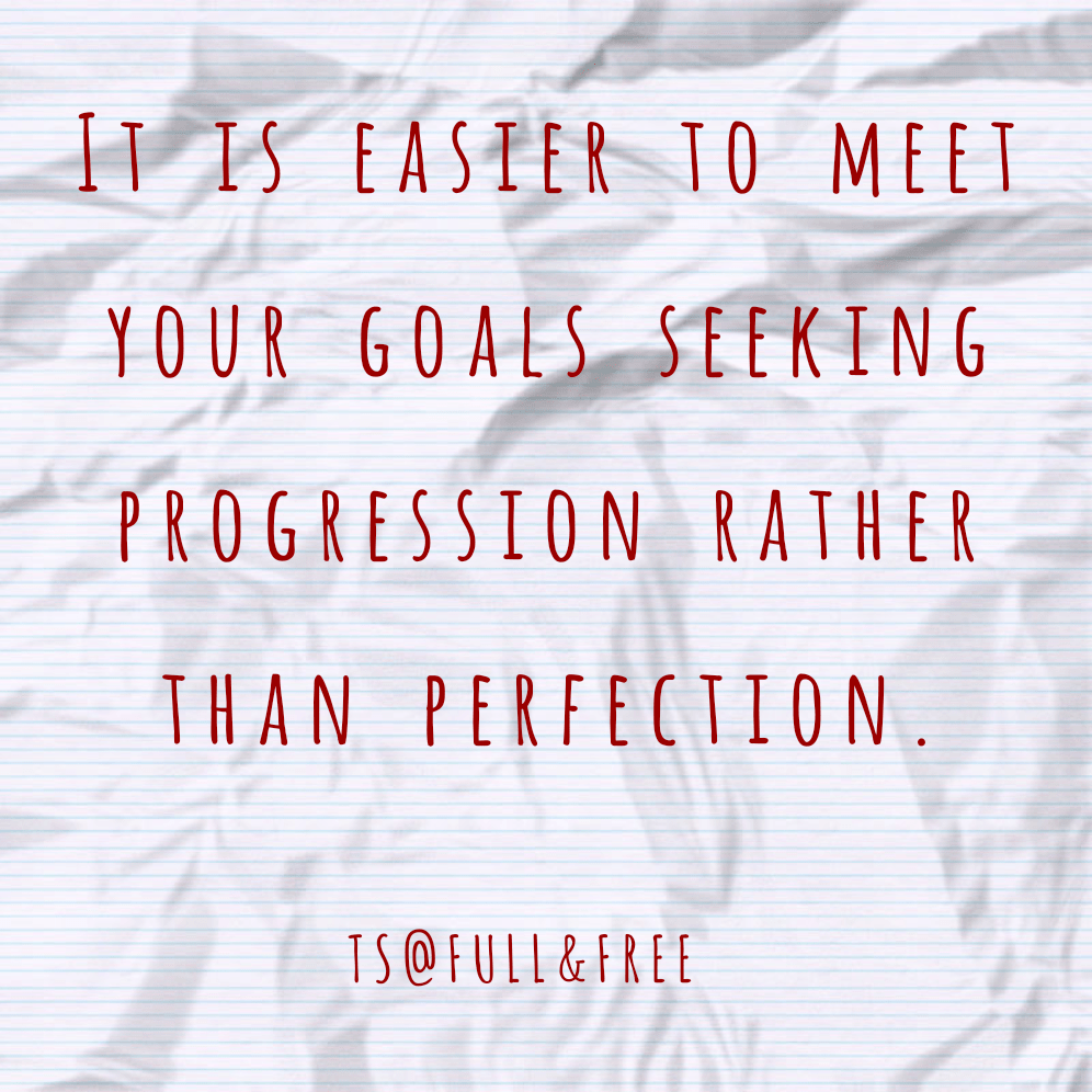 When you take progressive steps, not only do you know you have improved, but you feel better with your effort. You get the inspiration to take further steps. Pursing perfection in different areas of life, such as personal relationships or work goals, can make it very difficult to find satisfactory levels, leading to frustration and consequently an abandonment of such goals altogether.