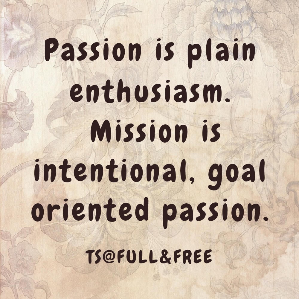 A fulfilling life is a life on a mission. And here comes the distinction between passion and mission. A good number of people have passions: something that they are enthusiastic about; however a few have a mission , something they are set on accomplishing with their passion..