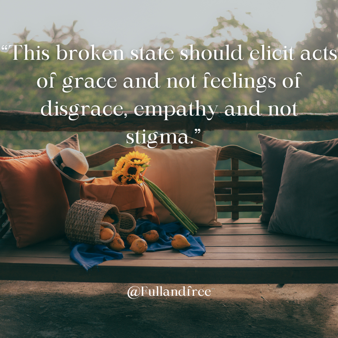 Most people don’t like to deal with what is uncomfortable and so they try to avoid or hide it in denial, shaming or blaming. Rather than hinder yourself or a loved one from recovery, know that help is available. This broken state should elicit acts of grace and not feelings of disgrace, empathy and not stigma. Therefore, it is not disgraceful to need and seek help, it is being graceful either to yourself or a loved one.